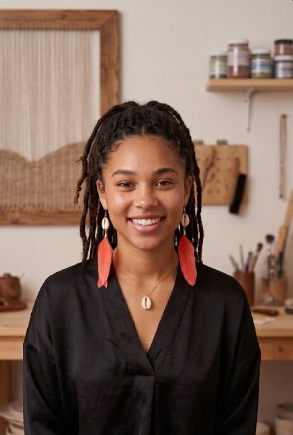 Inspirée par les forêts denses et les marchés colorés du Gabon, notre artisane assemble une à une chaque pièce — une rencontre entre tradition ancestrale et regard contemporain.